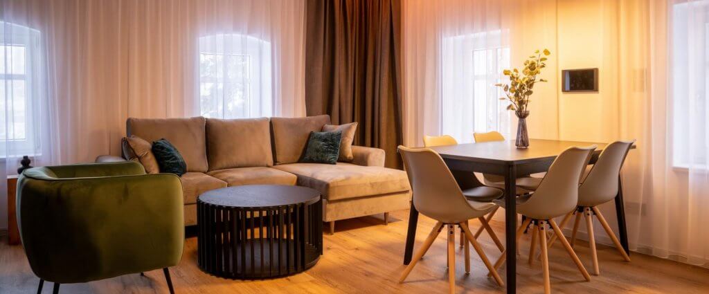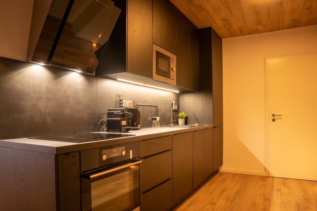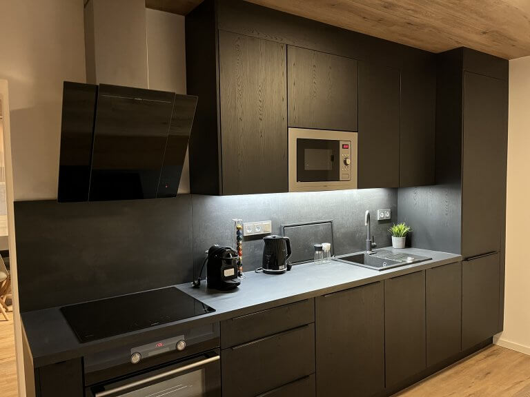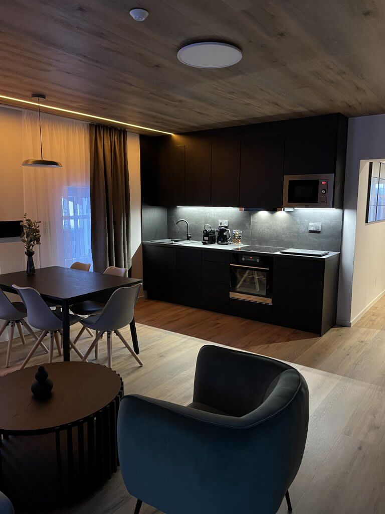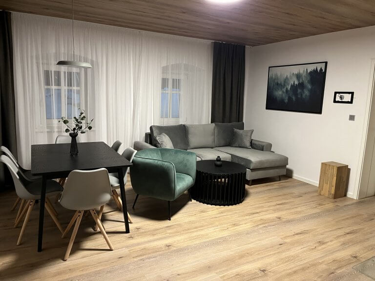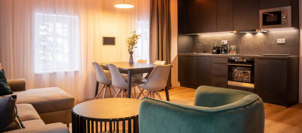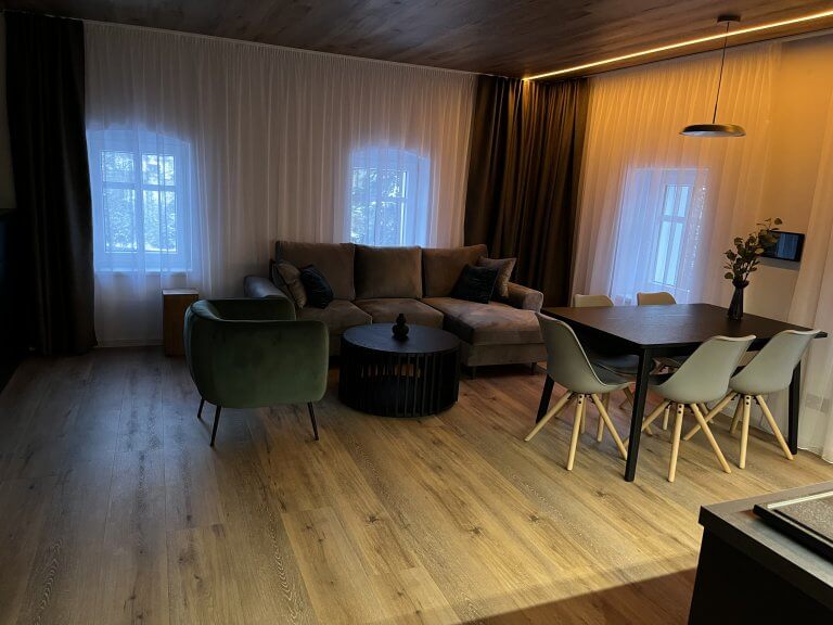 V domě se nacházejí 4 plně vybavené apartmány. Každý z nich má vlastní koupelnu a plně vybavenou kuchyň s jídelním stolem. V každém apartmánu se můžete posadit do pohodlného křesla či sedačky, zachumlat do deky a zapálit oheň v krbu. Vychutnejte si šálek kávy či čaje, uvařte si svařené víno nebo grog, dejte si sklenku vína nebo kvalitní whiskey a užijte si atmosféru naplno.