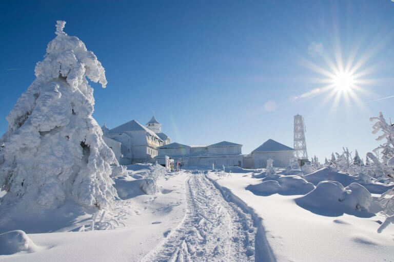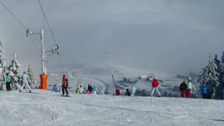 Propojený interskiregion vám umožní využít 47 km sjezdovek na jeden skipas. Unikátní propojení se sousedním areálem Fichtelberg si můžete užít díky skibusu, který vás každou hodinu zdarma převeze z Klínovce na Fichtelberg a zpět.